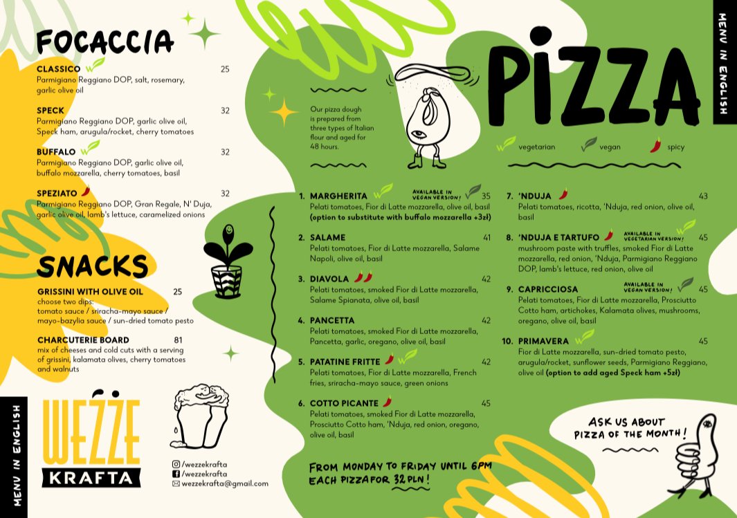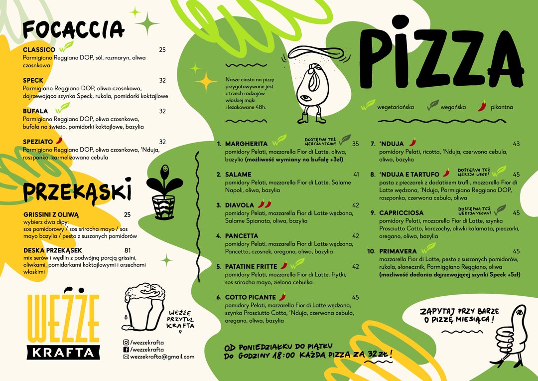 Cześć! Weźże wpadnij do nas! Jesteśmy krakowskim multitapem, ulubionym miejscem spotkań lokalsów. Mamy piwo kraftowe i pizzę neapolitańską. Na pewno znajdziesz coś dla siebie! Znajdziesz nas na Kazimierzu, przy ulicy Dajwór. Jest tutaj około 200 miejsc w lokalu i w ogródku. Rezerwacje przyjmujemy telefonicznie oraz przez messenger.